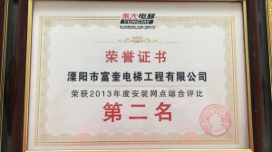 溧陽(yáng)市富奎電梯工程有限公司 溧陽(yáng)市富奎電梯工程有限公司是于二OO八年一月九日在原前身溧陽(yáng)市電梯工程公司基礎(chǔ)上成立的,是專(zhuān)業(yè)從事電梯銷(xiāo)售安裝維修、保養(yǎng)的企業(yè)。是國(guó)家質(zhì)監(jiān)總局頒發(fā)的特種設(shè)備安裝、改造、維修A級(jí)安裝許可證單位。公司組織機(jī)構(gòu)實(shí)行總經(jīng)理負(fù)責(zé)制,公司下設(shè)管理部、銷(xiāo)售部、安裝維修部、質(zhì)安部、財(cái)務(wù)部,公司另外設(shè)十二個(gè)分公司:四川分公司、江蘇分公司、上海分公司、浙江分公司、湖南分公司、遼寧分公司、山東分...